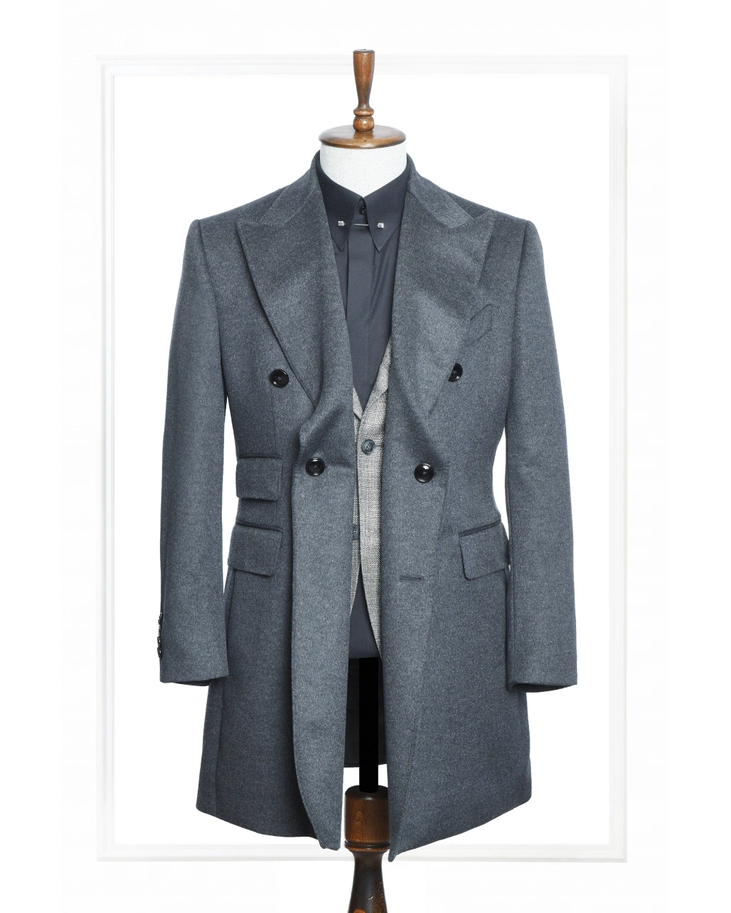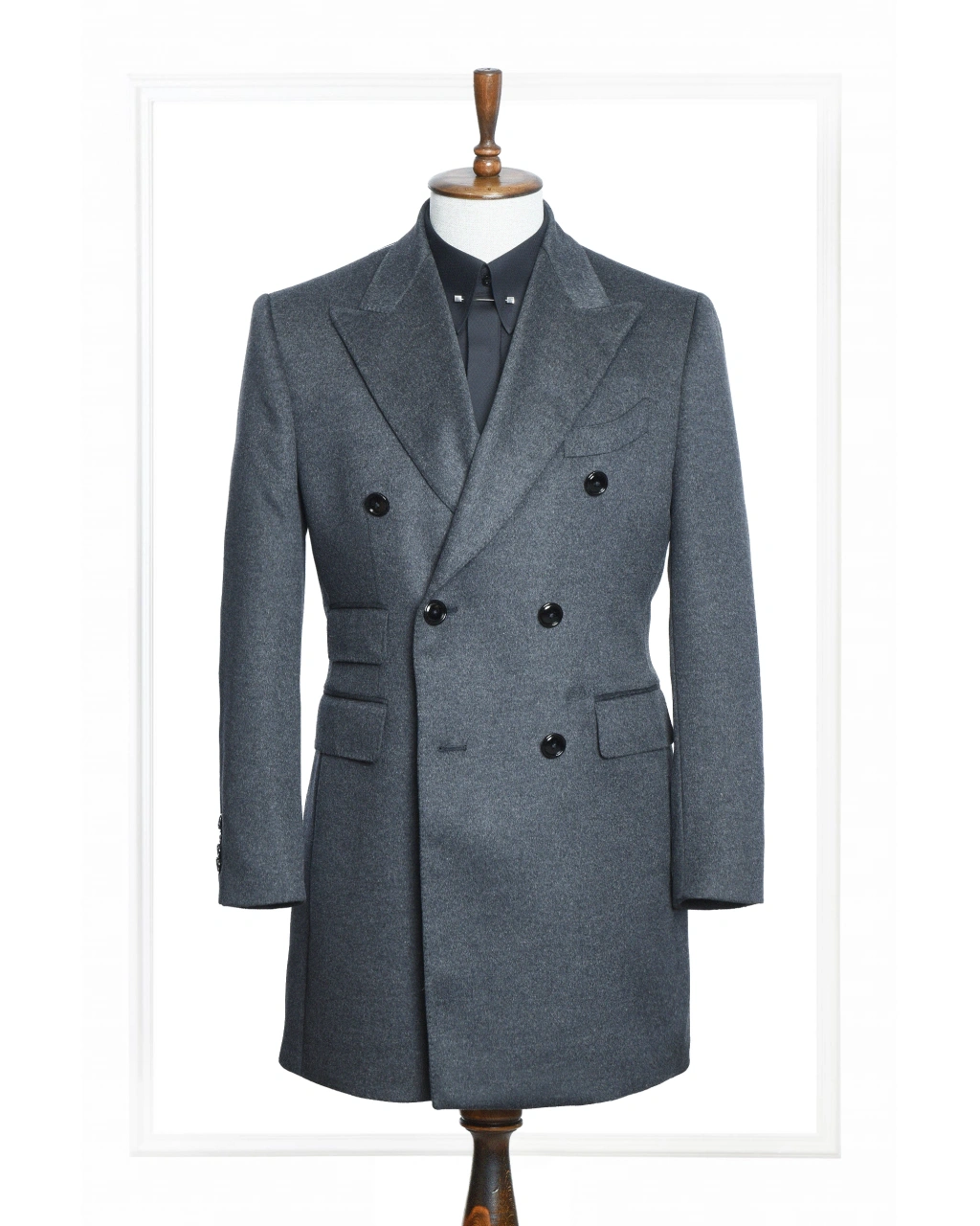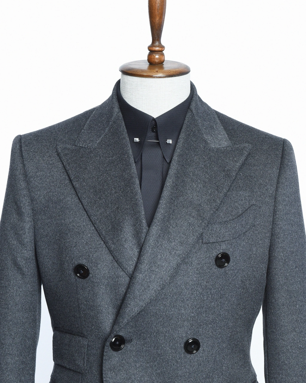 Özenle yapılandırılmış palto formu, sivri yaka detayı ve net omuz hattı sayesinde dengeli bir siluet oluşturur. Kruvaze palto formu ve kapaklı cepler yapısı hem fonksiyonel hem de karakterli bir görünüm sağlarken, şehir stilinden iş kombinlerine kadar geniş bir kullanım alanı sunar. Füme tonunun asaletiyle tasarlanan FERTU, zamansız bir kış klasiğidir.
